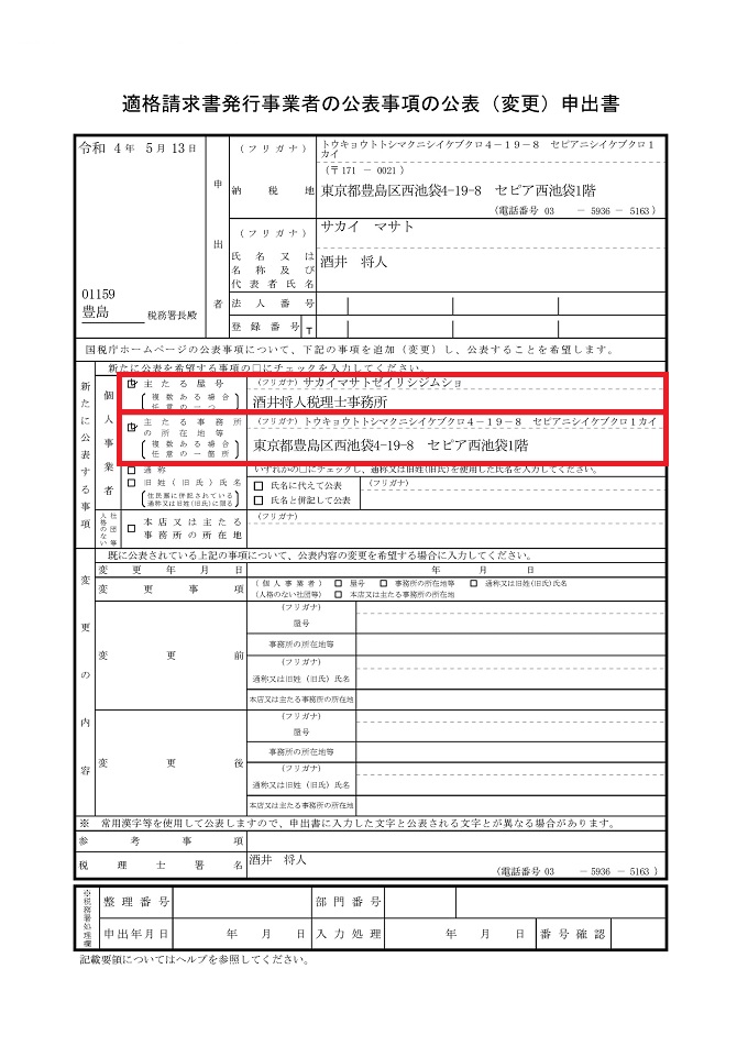 この「適格請求書発行事業者の公表事項の公表(変更)申出書」という長ったらし名前の書類を提出しますと…