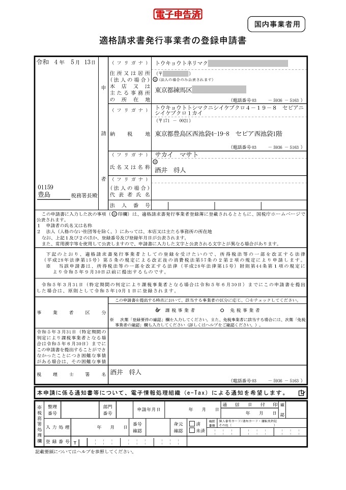 中古車販売業の皆様は、各オークション会場から「登録番号の通知」を求められているかと思いますので、既に適格請求書発行事業者の登録申請を済ませている方が殆どだと思いますが、私たち税理士業は、特に取引先に急いで「登録番号の通知」をする必要もなかったので、先月にようやく登録申請を行いました。