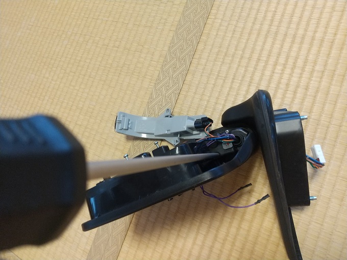 無事にミラーカバーが外れたので、どんどんバラしていきます。