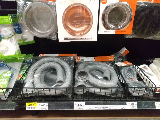 ここでは、洗面化粧台(流し台)の排水用の材料をいくつか物色しました。