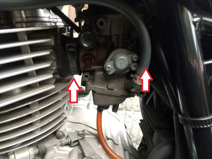ガソリンタンクを外すことなくキャブレターが外れました!