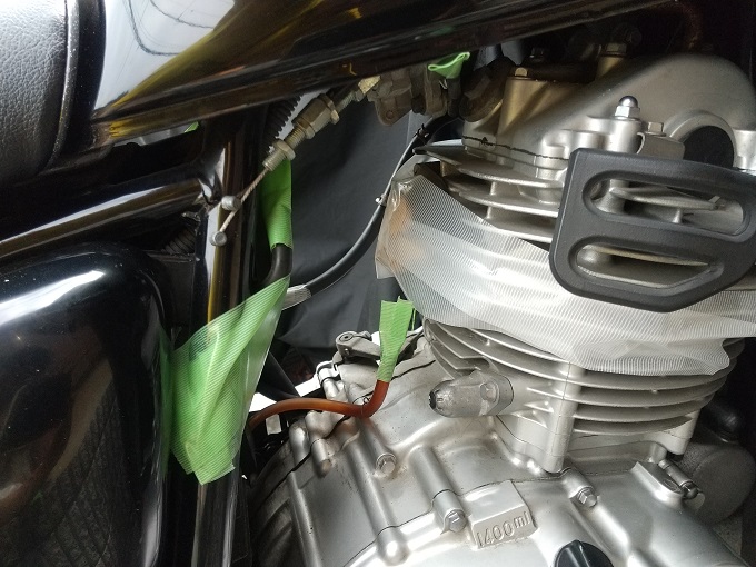 取り敢えずキャブレターが外れたので、車体側は養生しておいて、