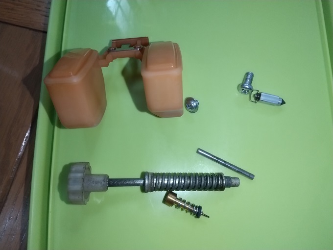 昨日車体から取り外したグラトラ君のキャブレターを分解していきます。