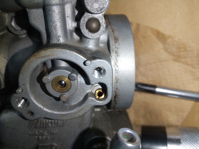 アイドリングの調整は、燃調ではなくアジャストスクリュで強制的にスロットルワイヤーの引きを調整する仕組みでした。