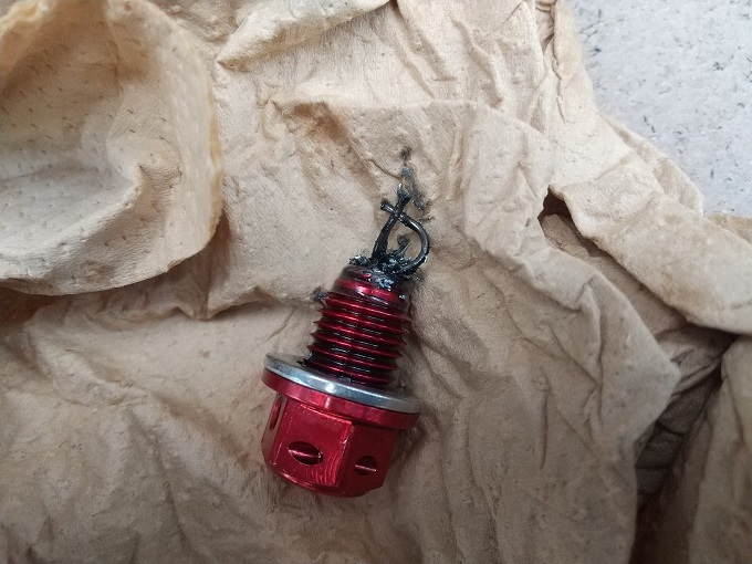 相変わらず鉄粉が混じるのは想定内として、マグネット付のドレンボルトには…