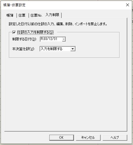 誰しもが経験したことのある「弥生会計あるある」だと思いますが、これは「設定」→「帳簿・伝票設定」と進んで、仕訳の入力制限をかけておくことで防止することができます。