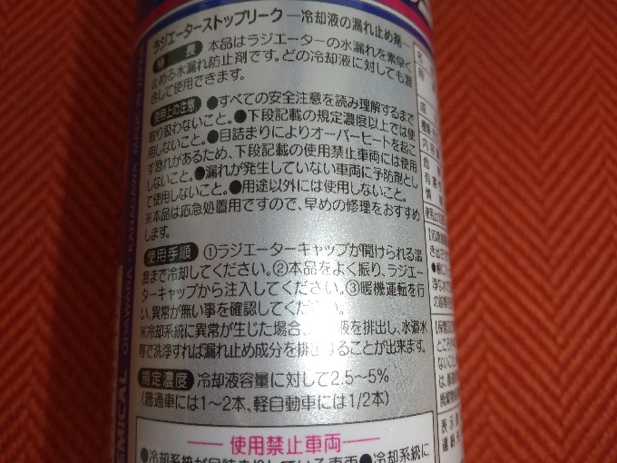 注入方法も、前回は「適正濃度のLLCと混ぜてから注入」だったのが、新バージョンは「よく振って注入」でOK。