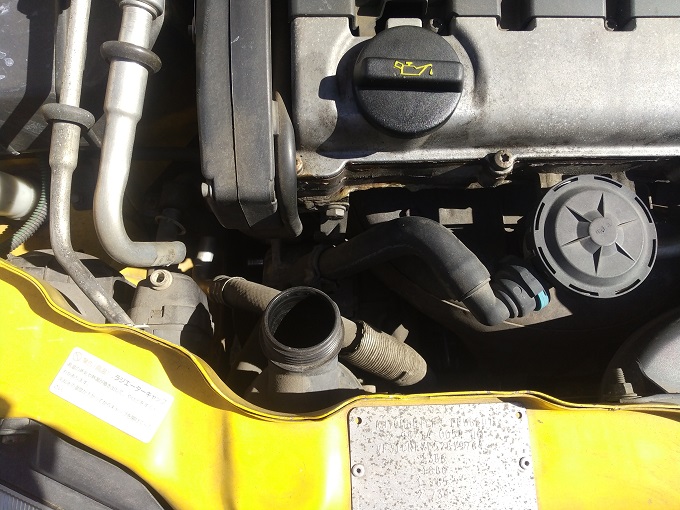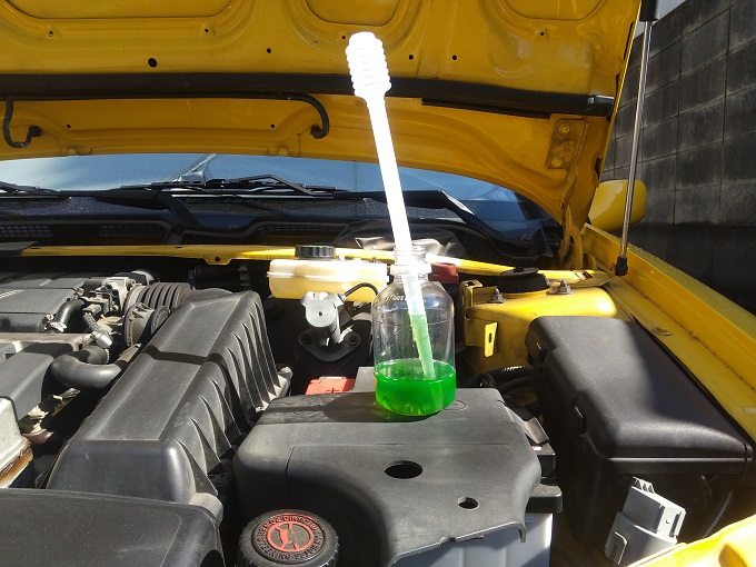 あと、車検直後でクーラントを交換したばかりということもあり、多少の水漏れがあるにせよ、そのまま150mlもワコーズRSLを注入するとアッパーレベルを遥に超えてしまうので、事前にちょこっとだけクーラントを抜いておきました。