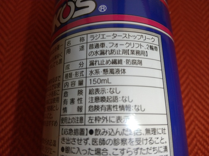 昔はクーラントの粘度を変えるようなものも存在したそうですが、最近では液剤に溶け込んでいる細かい繊維を患部に詰まらせることで漏れを止める仕組みが主流とのことです。