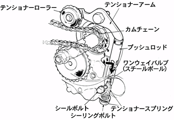 カムチェーンの調整が、不要となった油圧式自動調整のチェーンテンショナーを採用しています。