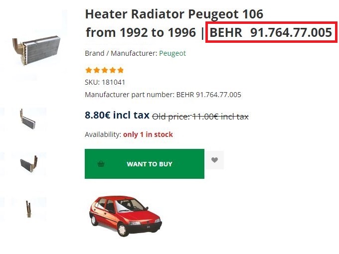 純正品番「6648.72」に対応するのがBEHR(ベアー)の「91.764.77.005」、