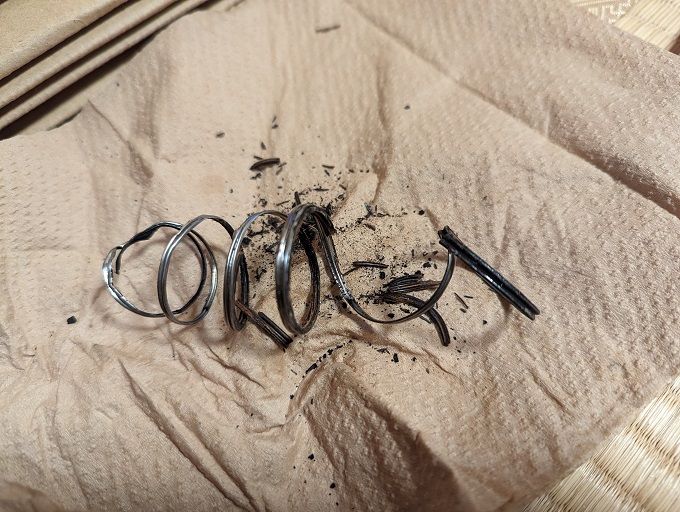 細い金属をバネ状に巻いて成形されているガスケットが、見事にバラバラになって外れるのです。