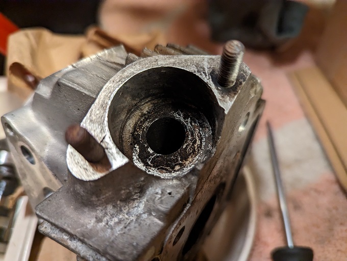 現在オーバーホール中のリトルカブのエンジンの排気ポートの状態がコチラなのですが、