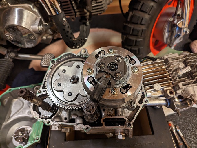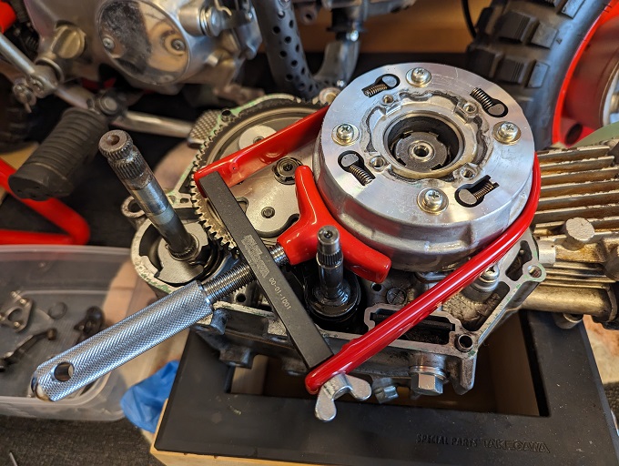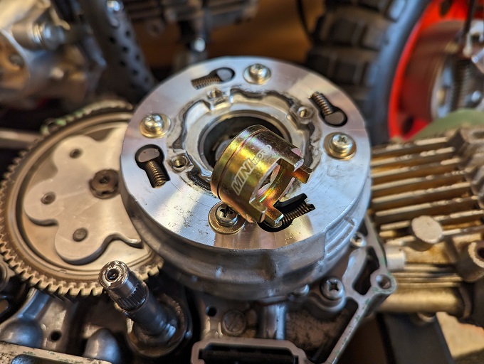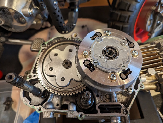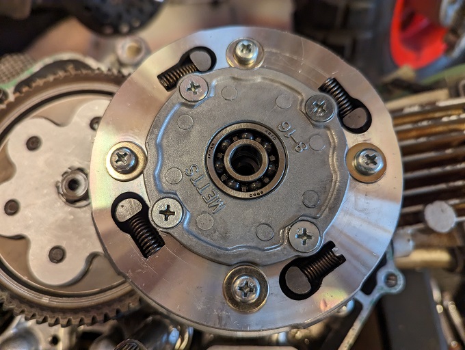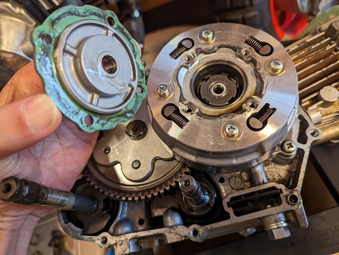 シリンダーヘッドのオーバーホールが完了したので、次はクラッチ回りを見ていきます。