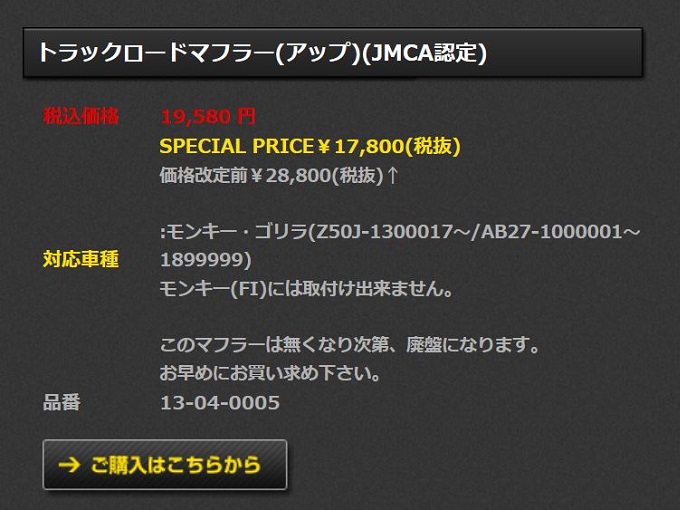 インパクトのあるスタイルとトラッカーサウンドをもつ“トラックロードシリーズ”のモンキー・ゴリラ用アップタイプ。