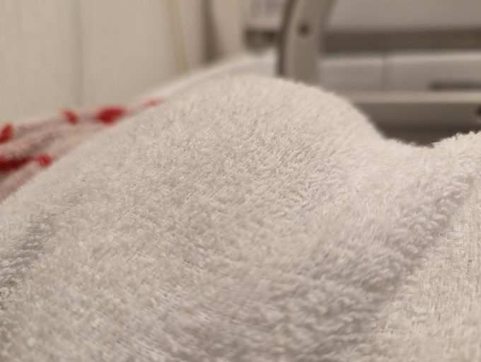 そうしたら、このパイルが立ったタオルを、なるべく平になるように洗濯乾燥機の中にINします。