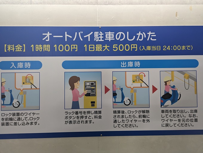 オーソドックスなワイヤーロック方式で、1時間100円で、1日最大500円という明朗会計!