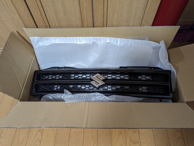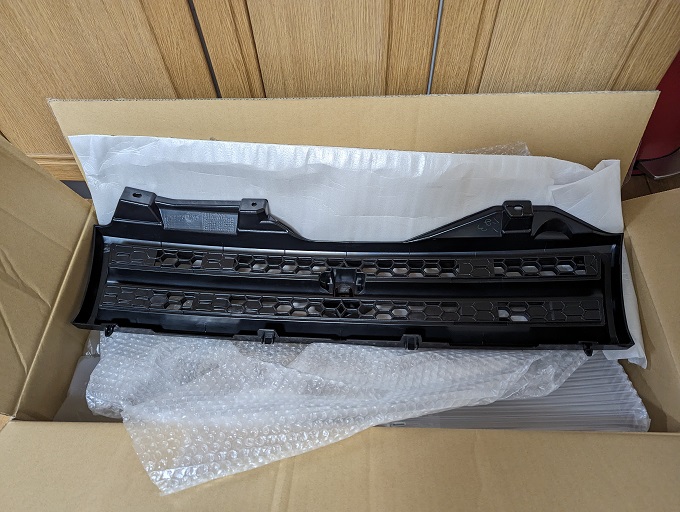 この「ランドベンチャー感」が丸出しのフロントグリルを交換します。