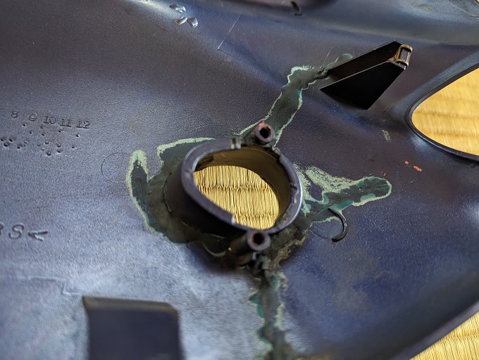 この仮カウルを仕上げて、今ついているカウルと交換して、今ついているカウルを補修して、また元に戻して…