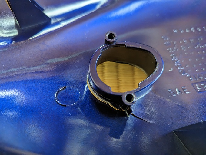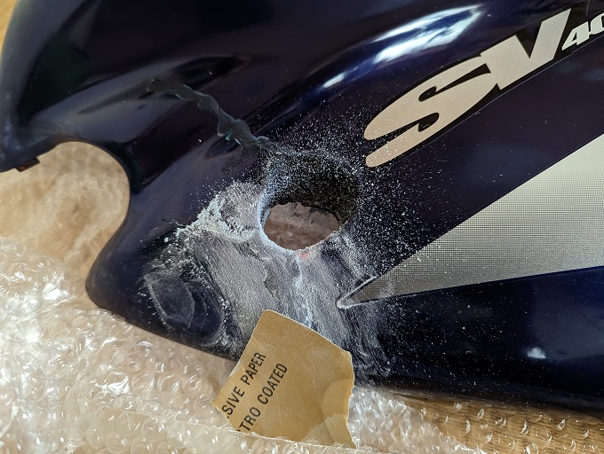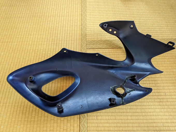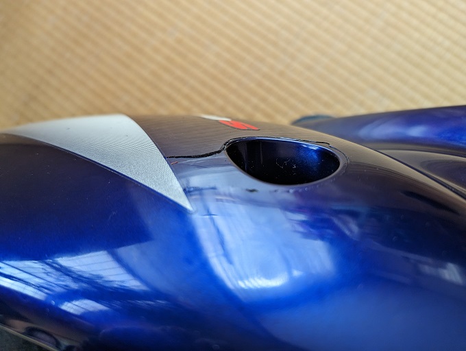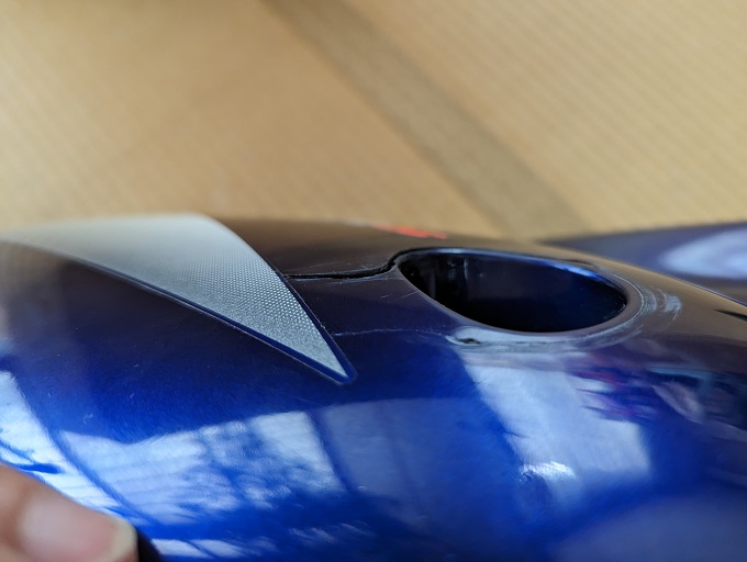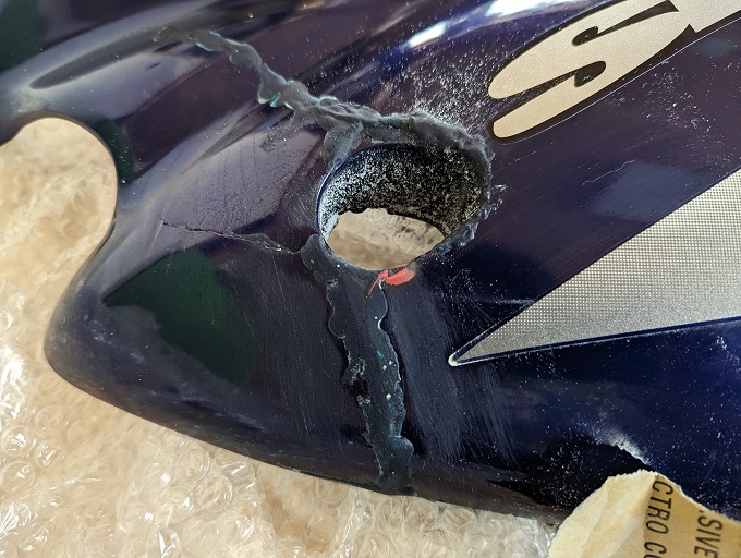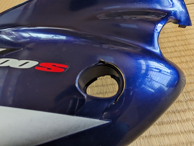 立ちごけすると確実にウインカー取付部分が割れる仕組みになっているサイドカウル。