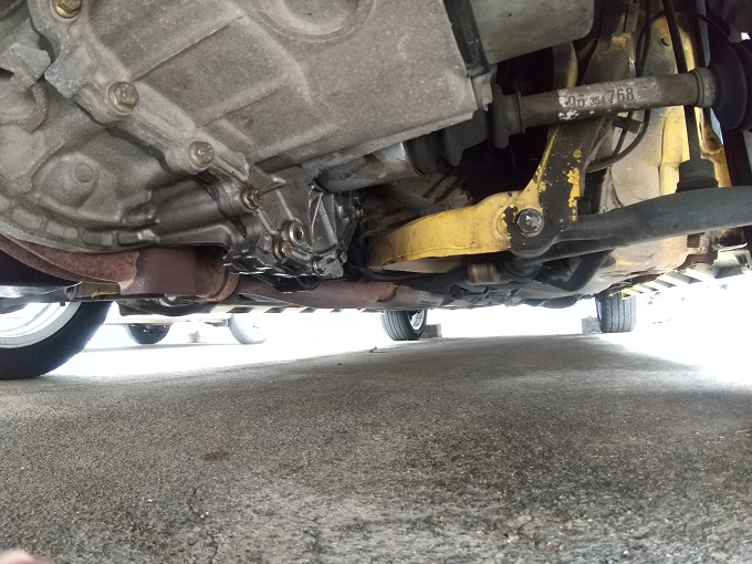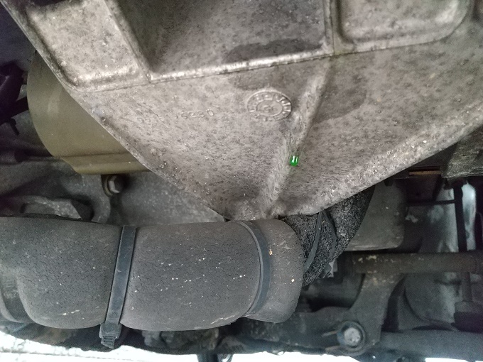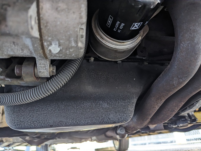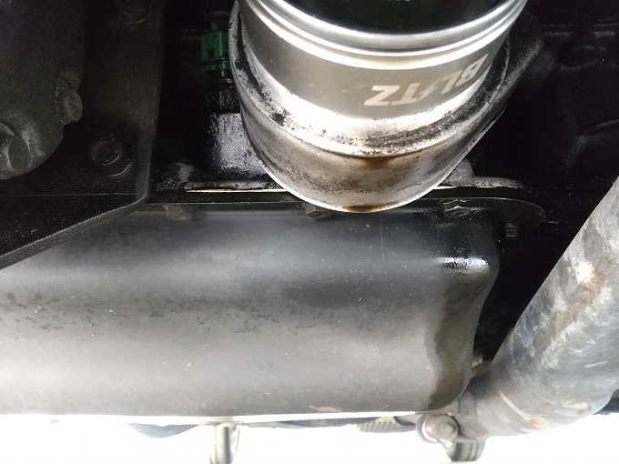 場所的にオイルクーラーとオイルフィルターのところのオイル漏れかな?