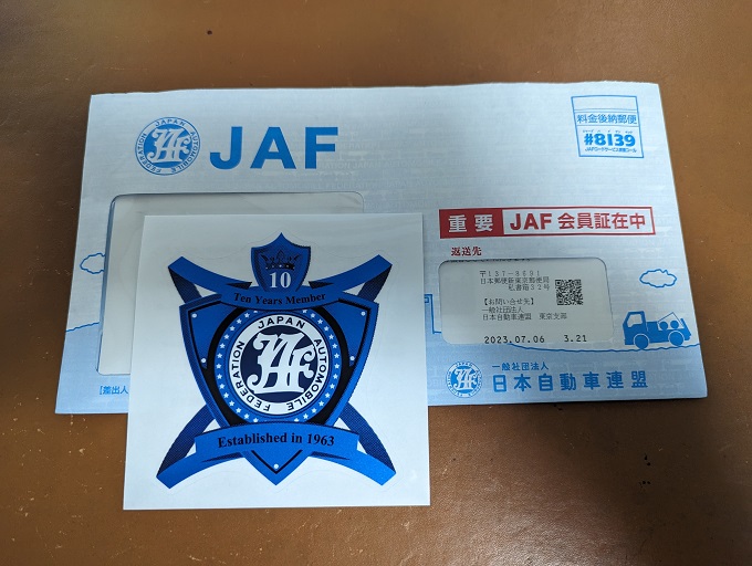 JAFの個人会員を10年以上継続している人は「永年ステッカー」が貰えるそうです。