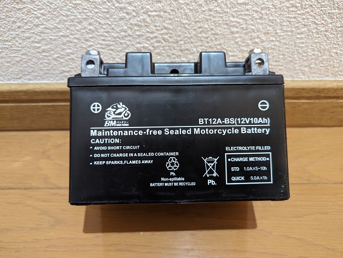 この「BMバッテリー」BT12A-BSという製品は、いわゆる「互換性バッテリー(非純正品)」で、SV650Sの純正バッテリーは「GSユアサ」YT12A-BSです。