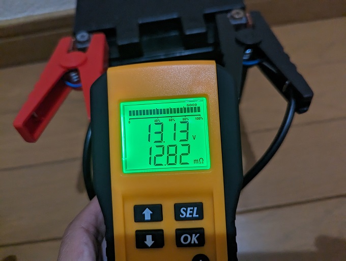 電圧が「13.13V」、抵抗値が「12.82mΩ」と___φ(。_。*)メモメモ.