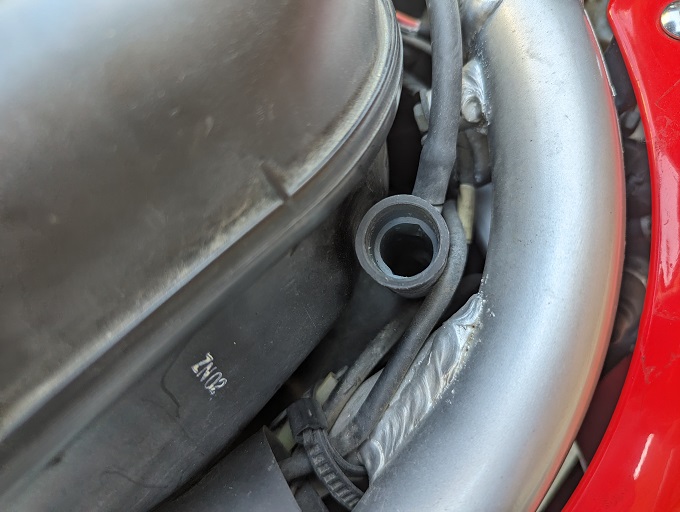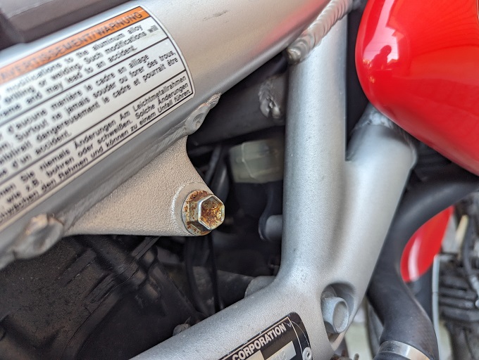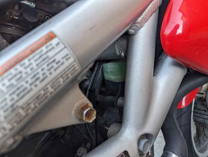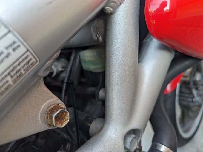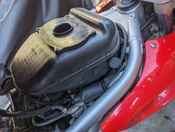 ここにペットボトルから水道水を入れるのですが、車体を直立に起こした状態で、リザーブタンクの影響を確認しながら少しずつ注ぐという作業は私一人では厳しいです。
