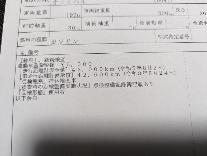 当日前に行ったことは、この予約とバイクの点検をして「点検記録簿」を書くところまでです。