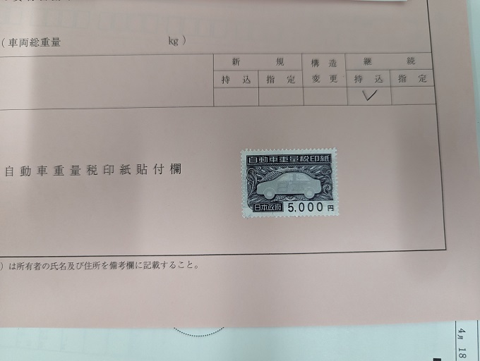 ちなみに、重量税は国税なので「印紙」で納付します。