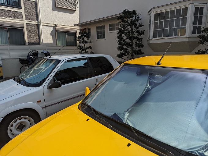 最近の車はルーフ後端に設置するショートロッドタイプやシャークフィンタイプが主流ですが、106S16君は、