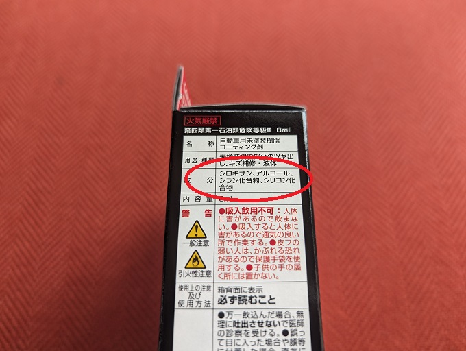 成分は、シロキサン、アルコール、シラン化合物、シリコン化合物。