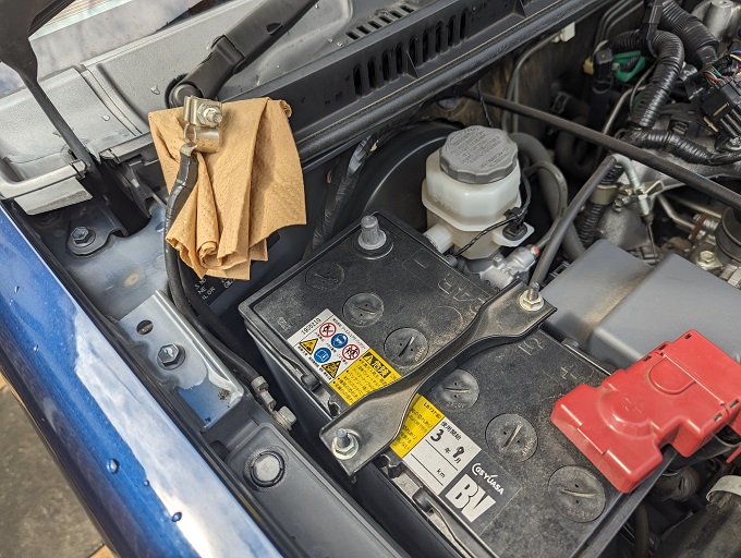 まず、エアバッグの誤爆を回避するためバッテリーのマイナス端子を外して数分待ちます。
