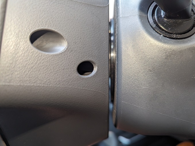 エアバッグ固定ピンの穴は、左右と下側にあって、
