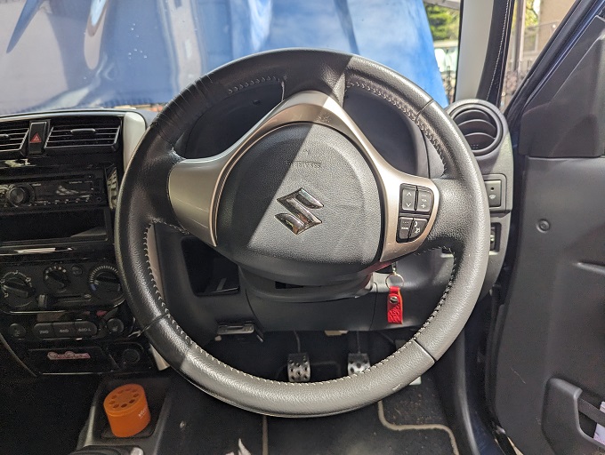 今回は、捲れた表皮をブチルゴムで補修していたジムニーシエラ君のステアリングを交換していきます。