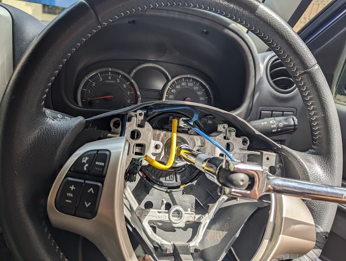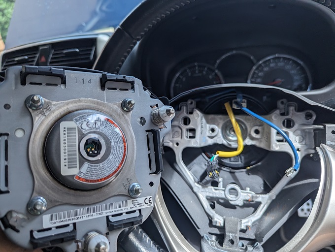 バッテリーのマイナス端子を外したら、まずはエアバッグユニットを外します。
