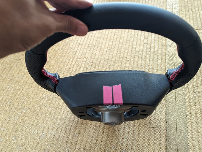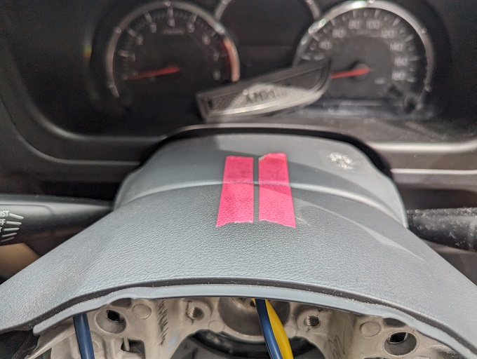 これでステアリングが外れる状態になるのですが、センターがズレないようにマーキングをしておきます。