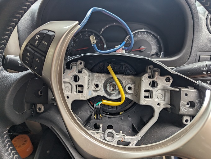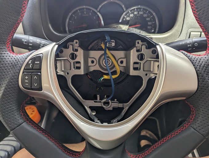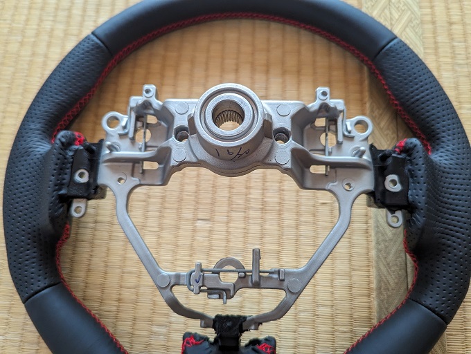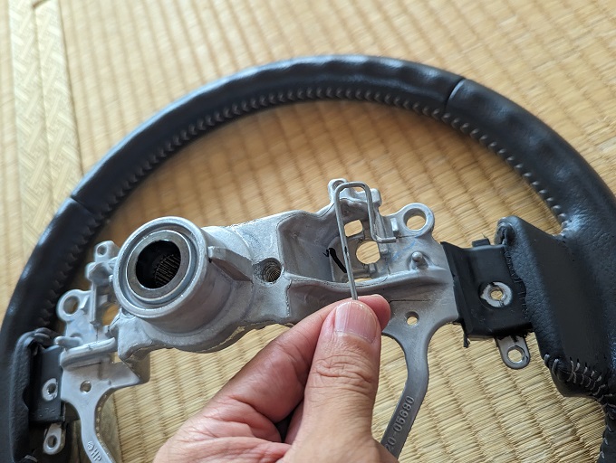 あとは逆の手順で組み戻すだけなのですが、純正ステアリングの方からカバー、スイッチ類、化粧パネル、エアバッグユニットの固定ピンなどを移設しなければなりません。