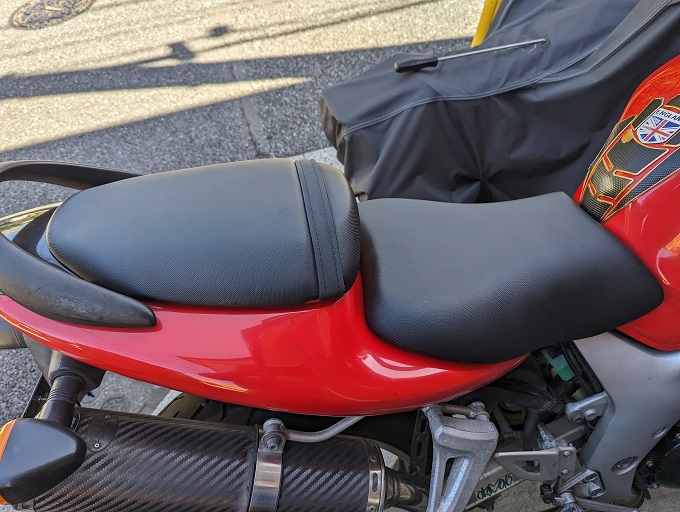 それから、表皮の質感を合わせるために、特に破れてはいなかったタンデムシートも交換しました。