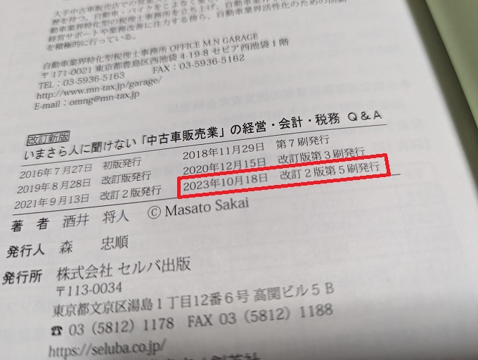 前回の重版から1年弱、拙書『改訂新版_いまさら人に聞けない「中古車販売業」の経営・会計・税務』が、4度目の重版(第5刷)となりました。