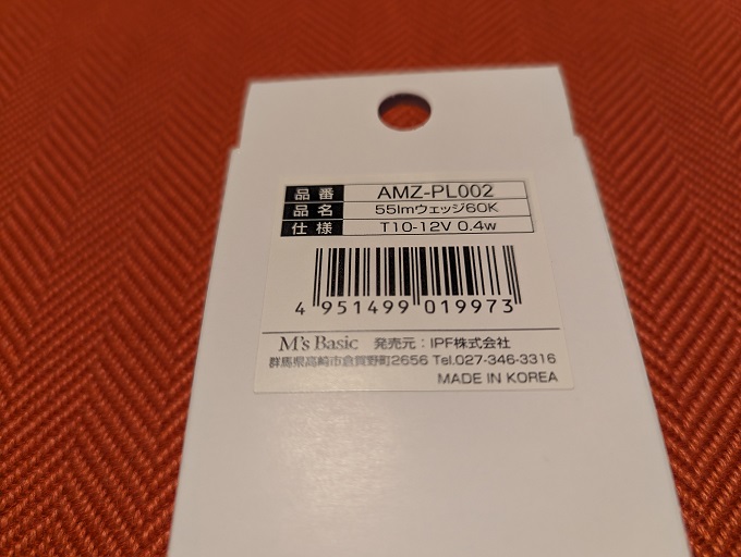 この飾り気のないパッケージの商品はIPFがAmazon.co.jpで展開するM’s Basicというブランドで、IPFのポジションランプをベースにして、スペックや品質を保ちながらコストを抑えたモデルです。