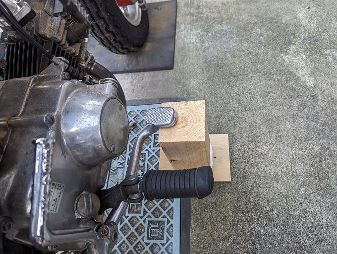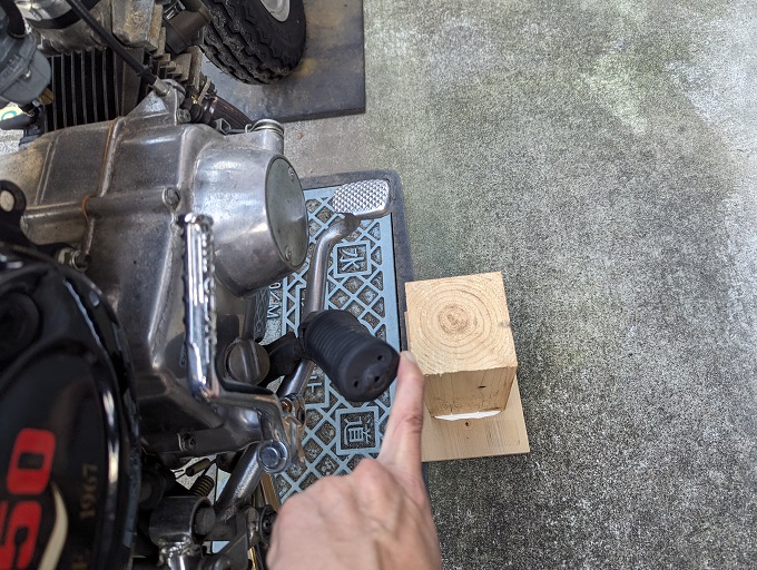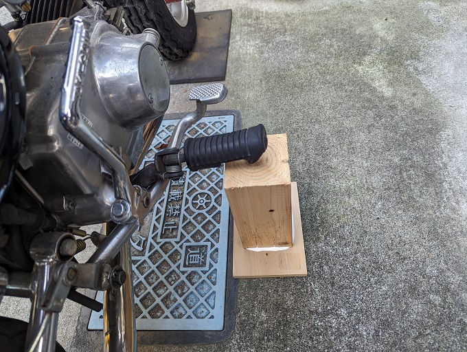この束を、サイドスタンドとは反対側に添え当てておけば転倒防止はバッチリなので、