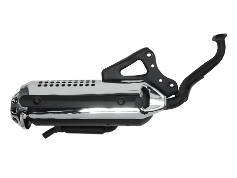 95年モデルのライブディオZXに初めて採用された「艶やかな光沢を放つ鏡面処理を施したステンレス・カバードタイプ」のマフラーです。