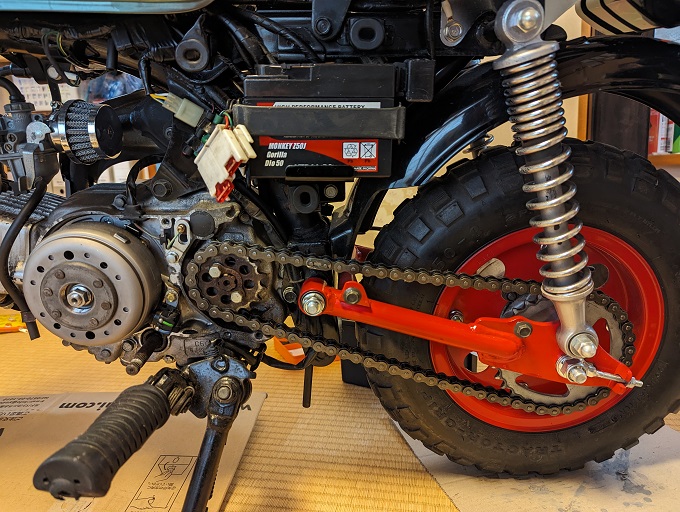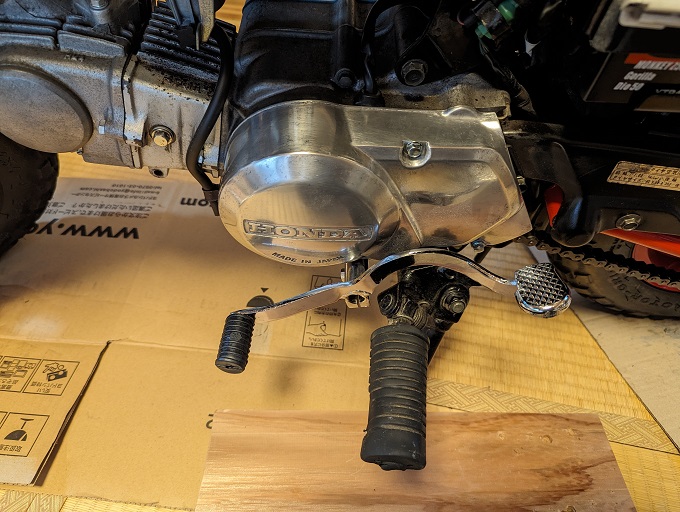 ※カブ純正のシーソーペダルはモンキーには付かないので、ミニモト製のオフセットされているシーソーペダルを使用しています。
