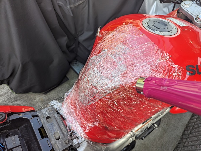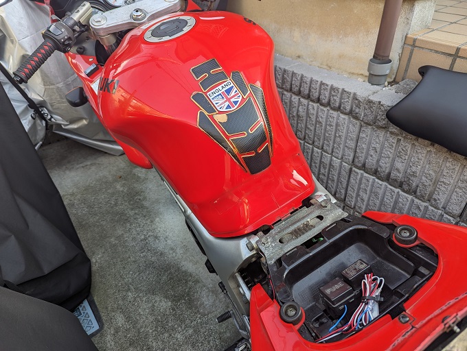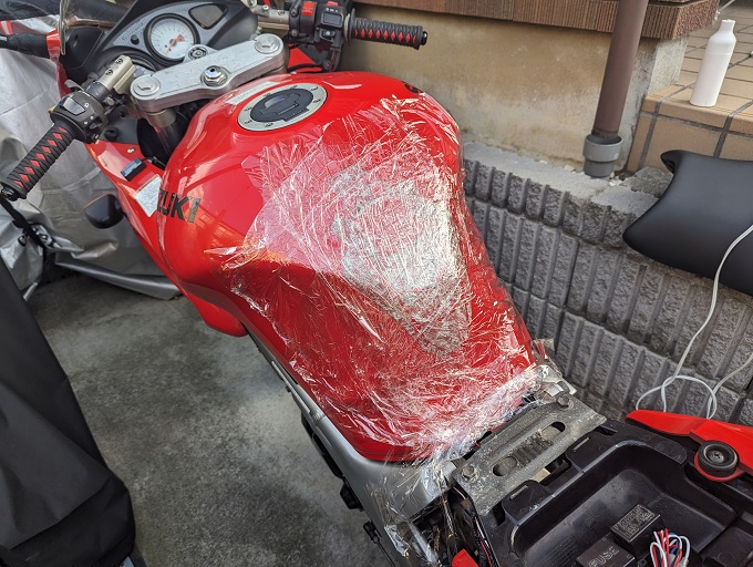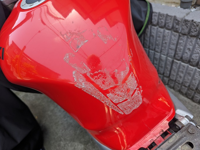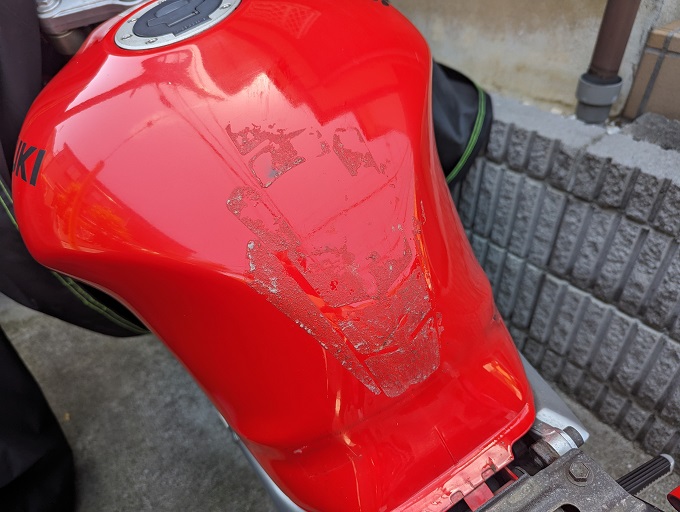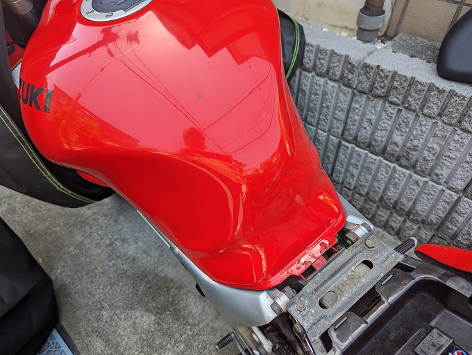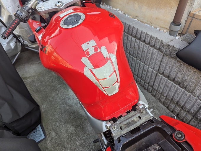 前々から気になっていたSV650S君のタンクパッドを貼り替えます。