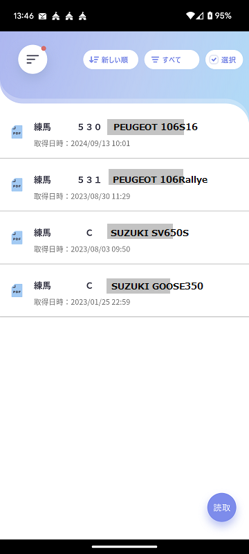 これにて、我が家の車検対象となっている車2台とバイク2台の計4台の情報が車検証閲覧アプリに格納されました。