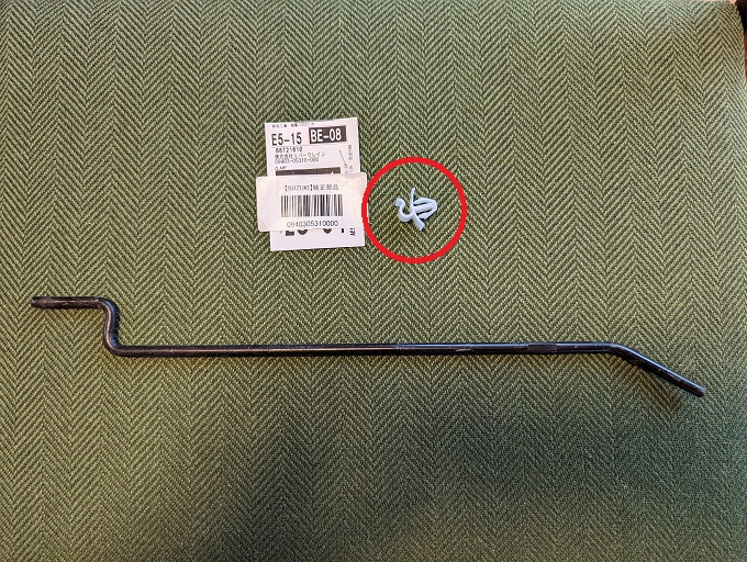 そういえば、タンクを支える棒をシート下に収納しておくためのクリップが割れていたので、ついでに交換しました。