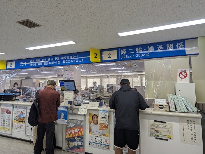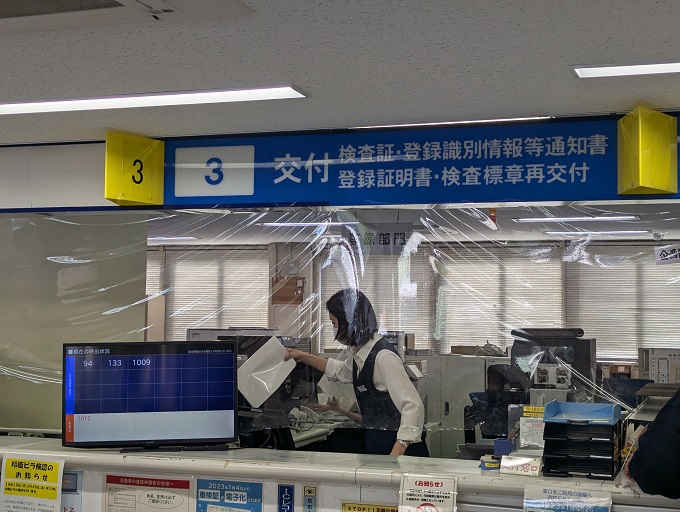 そうしましたら、A棟の検査登録事務所の2番窓口に書類を提出します。