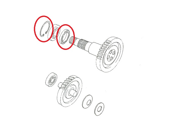 あと、メインアクスルのベアリング(※C)も交換しておいた方が良さそうです。